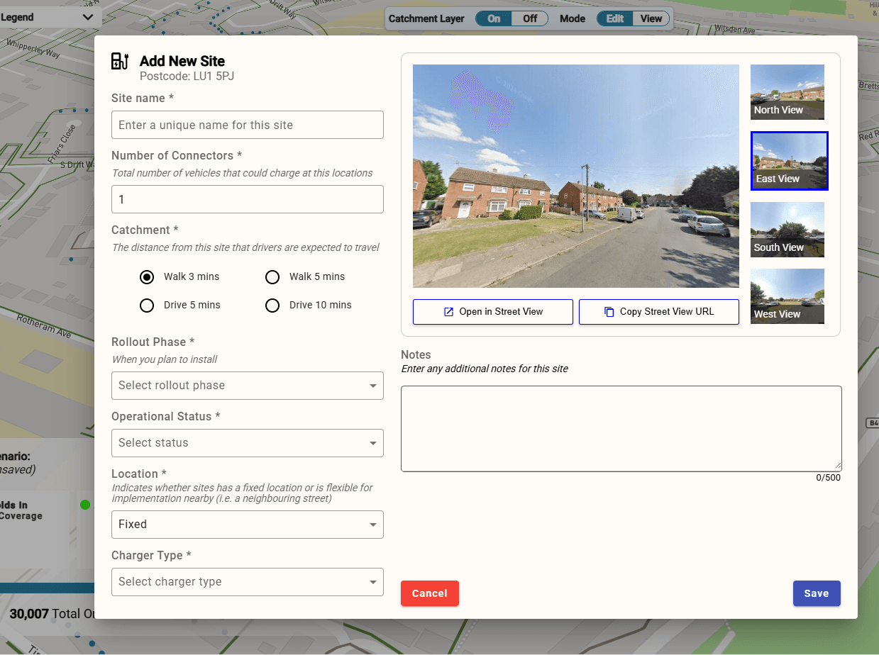 The tool streamlines the entire process of chargepoint installation, from site selection to connection cost information.